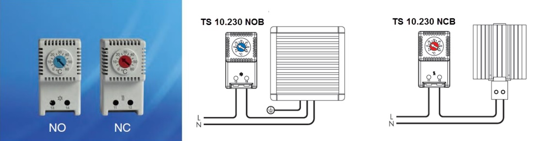 Кроме того, доступны к заказу новая линейка термостатов (терморегуляторов), серия B: TS 10.230 NOB, термостат (терморегулятор) с нормально открытым контактом, и TS 10.230 NCB, термостат (терморегулятор) с нормально закрытым контактом.