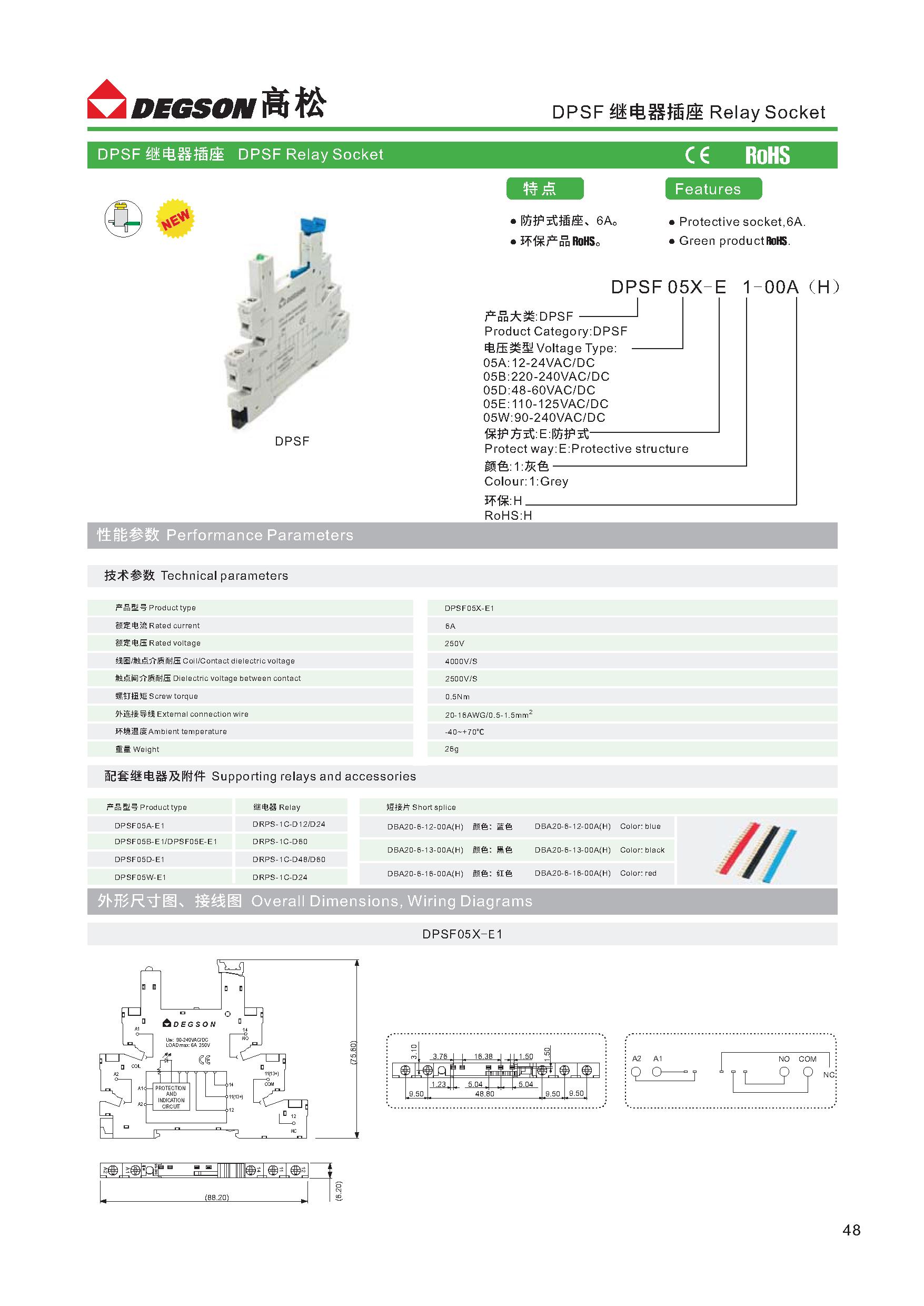 Degson выпустил новую колодку/розетку для реле DRPS - DPSF. Новая колодка/розетка рассчитана на работу с более высоким напряжением. Возможные варианты: