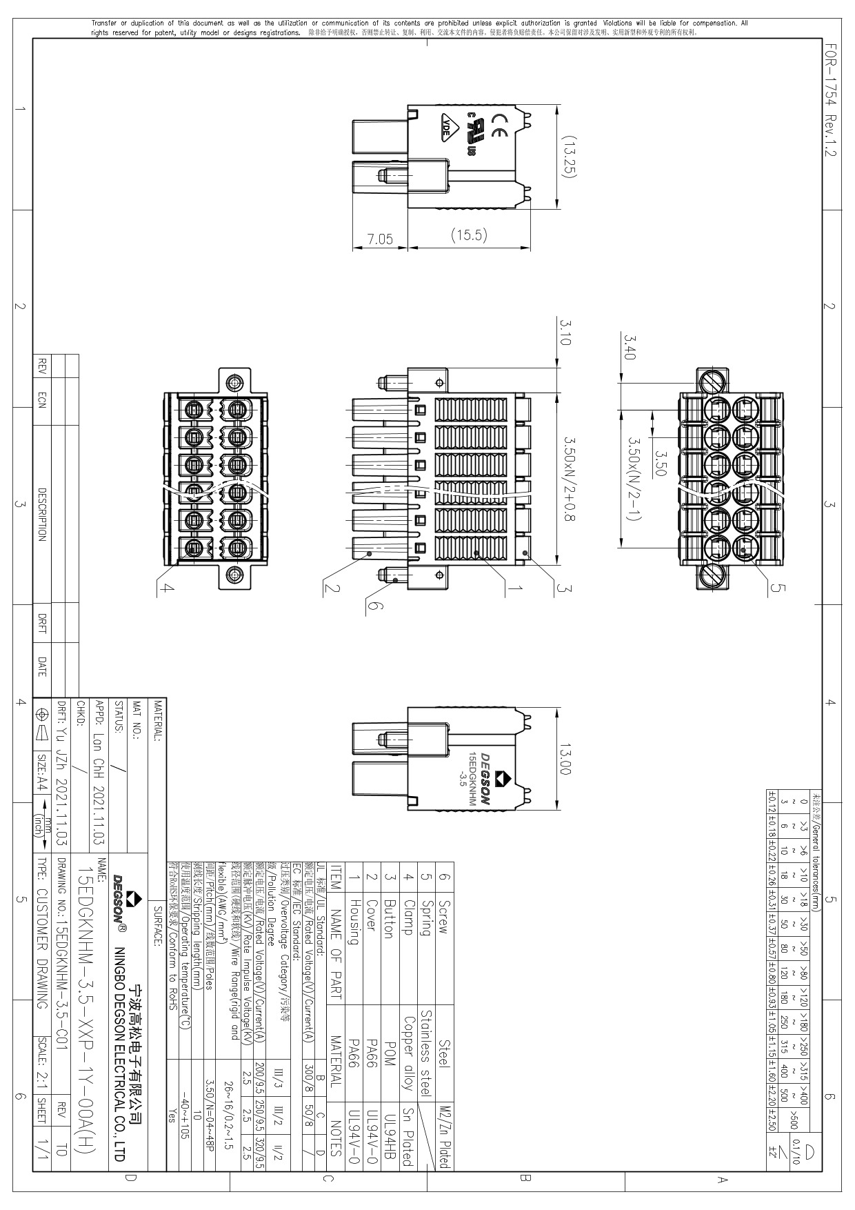 15EDGKNHM-3.5-04P-14-00Z(H), Клемма на печатную...