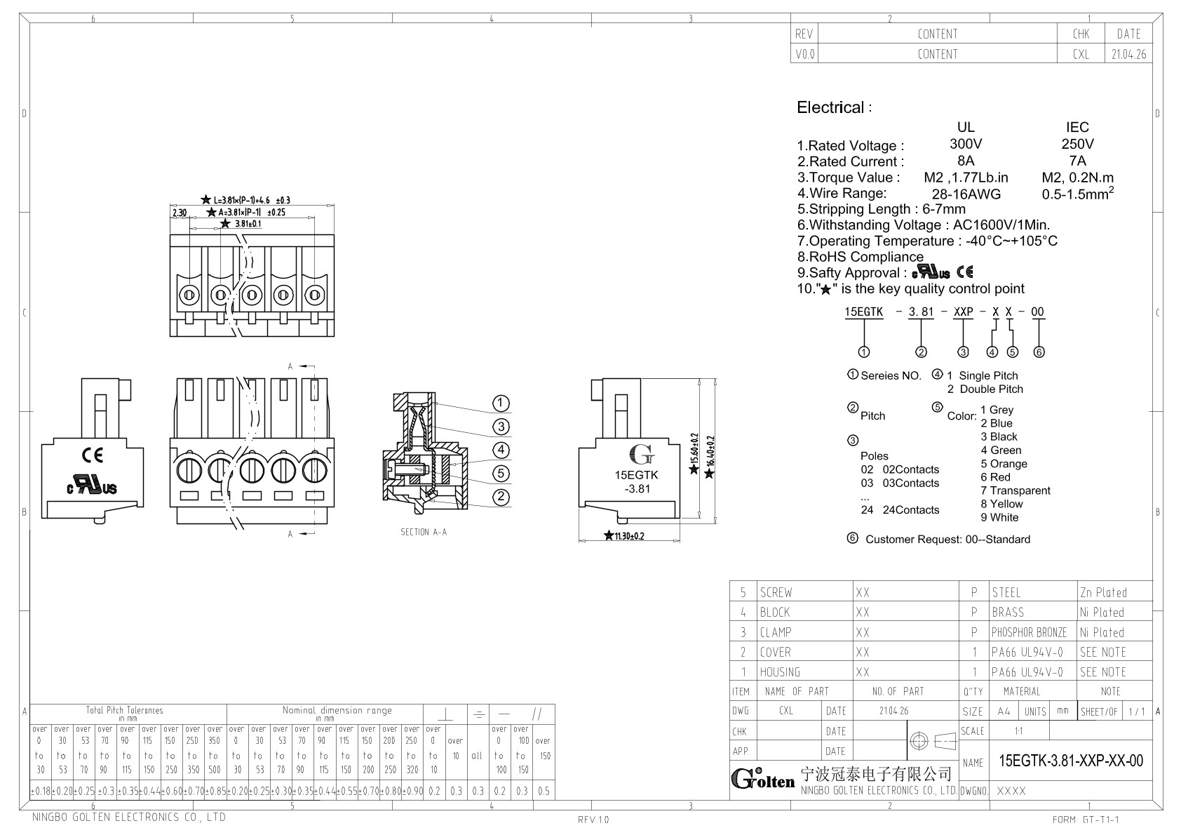 | Шаг на клемме | 3.81 |