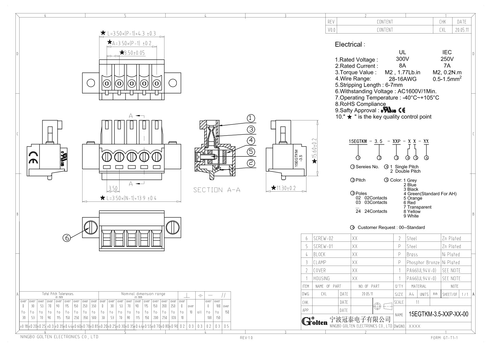 | Шаг на клемме | 3.5 |