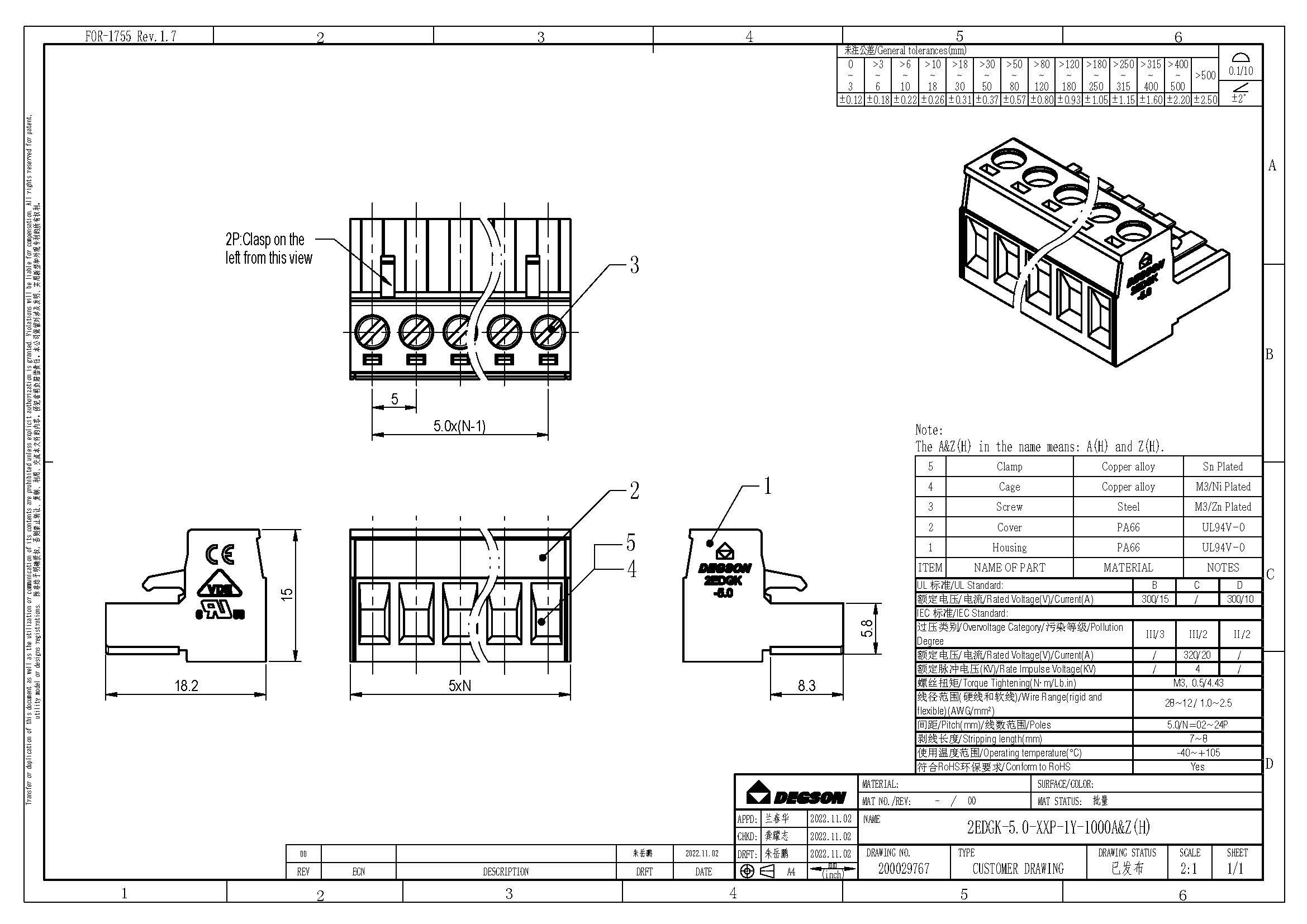 2EDGK-5.0-12P-14-1000Z(H), Клемма на печатную плату,...