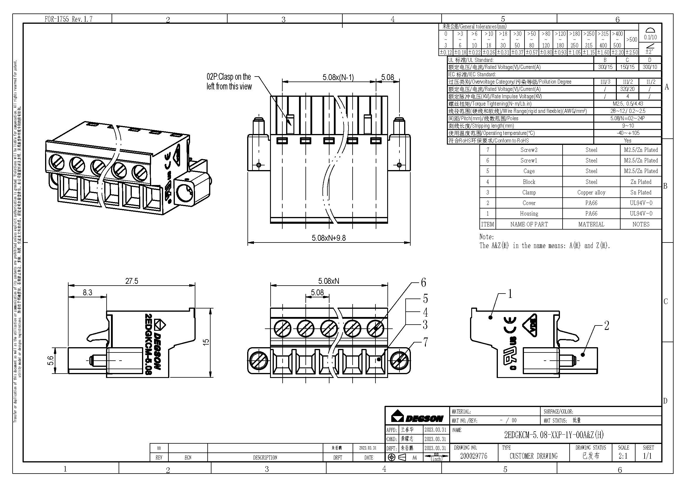 2EDGKCM-5.08-24P-14-00Z(H), Клемма на печатную плату,...