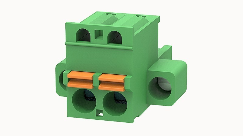 Клемма на печатную плату, 2 полюса, шаг 5.0 мм, зеленая