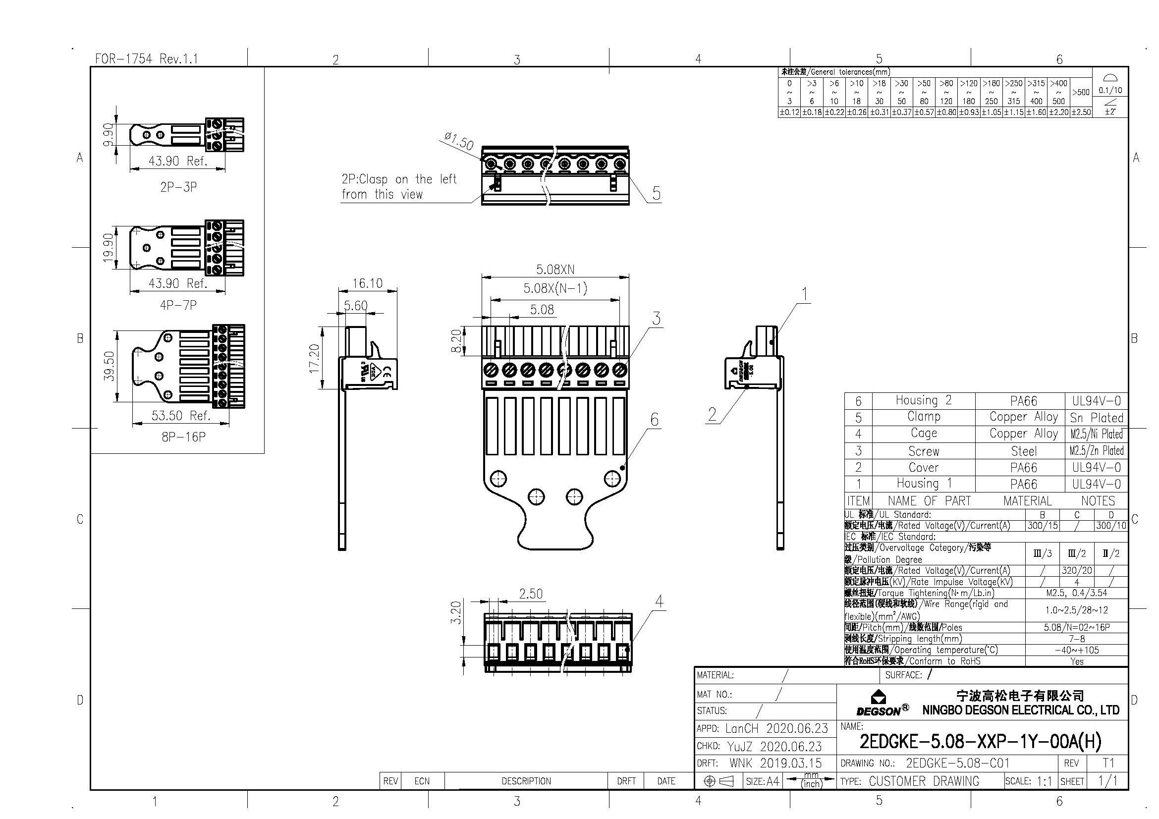 2EDGKE-5.08-06P-14-00Z(H), Клемма на печатную плату,...
