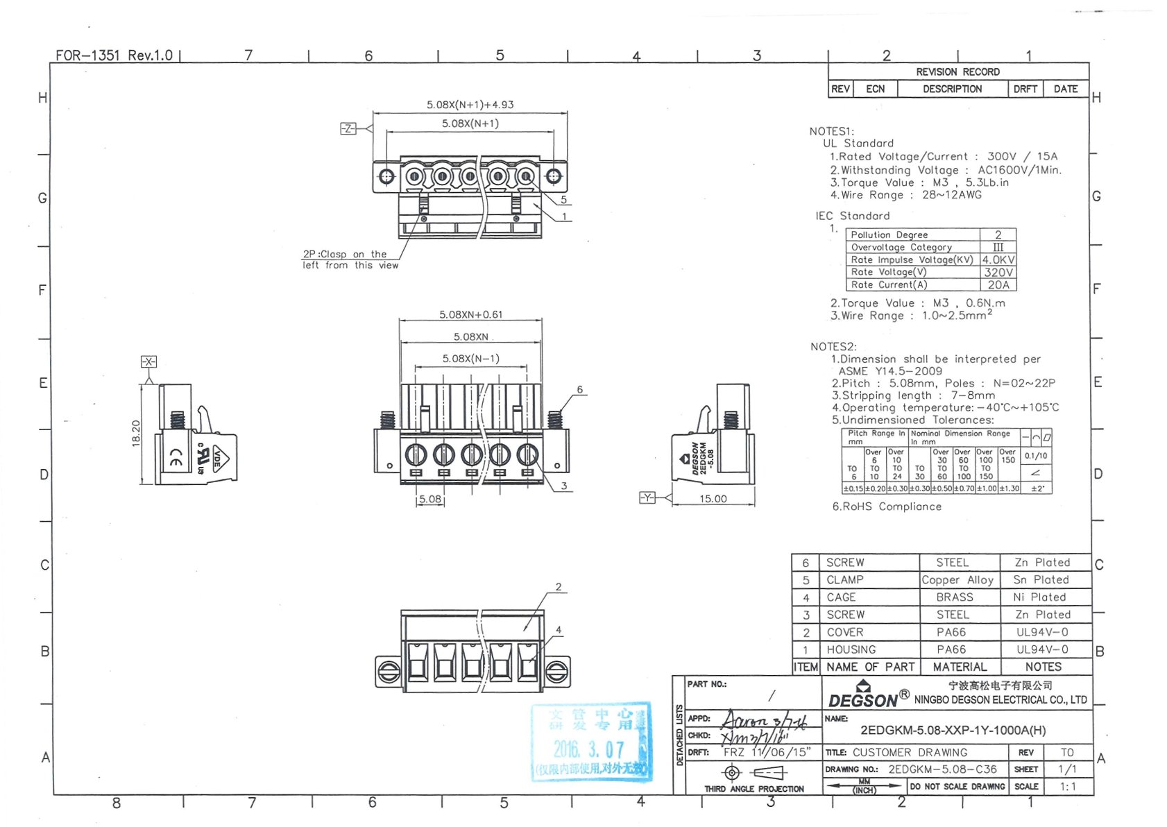 | Шаг на клемме | 5.08 |