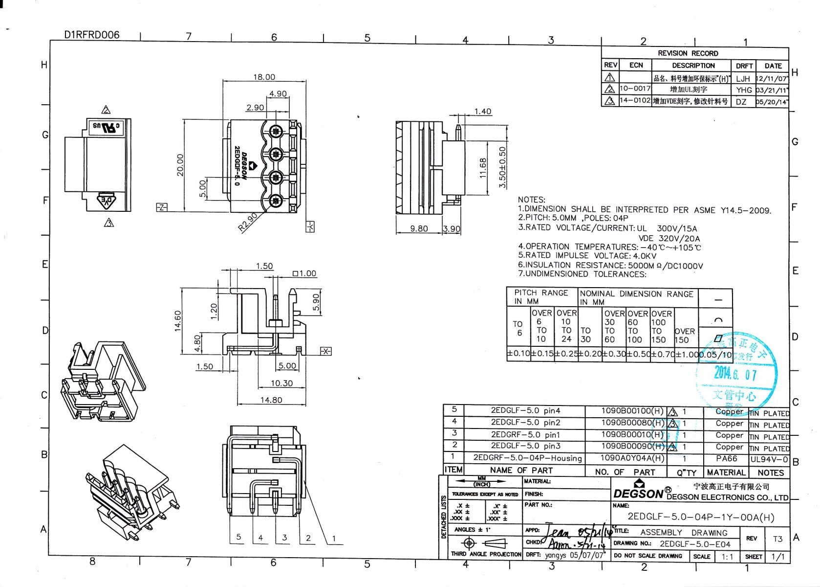 2EDGLF-5.0-04P-14-00Z(H), Клемма на печатную плату, 4...
