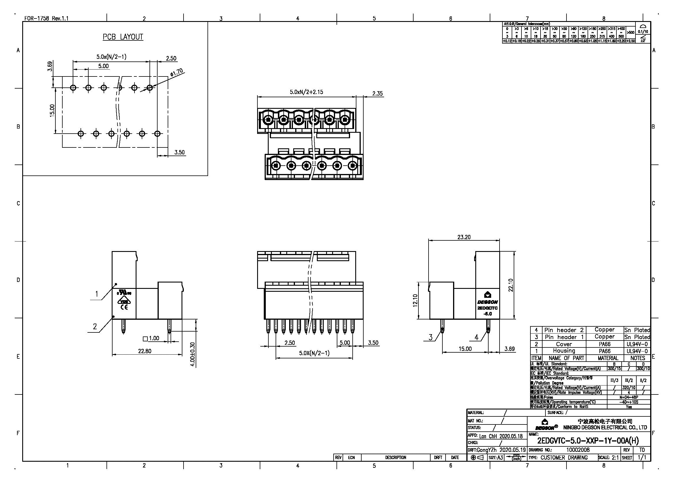 2EDGVTC-5.0-04P-14-00Z(H), Клемма на печатную плату,...