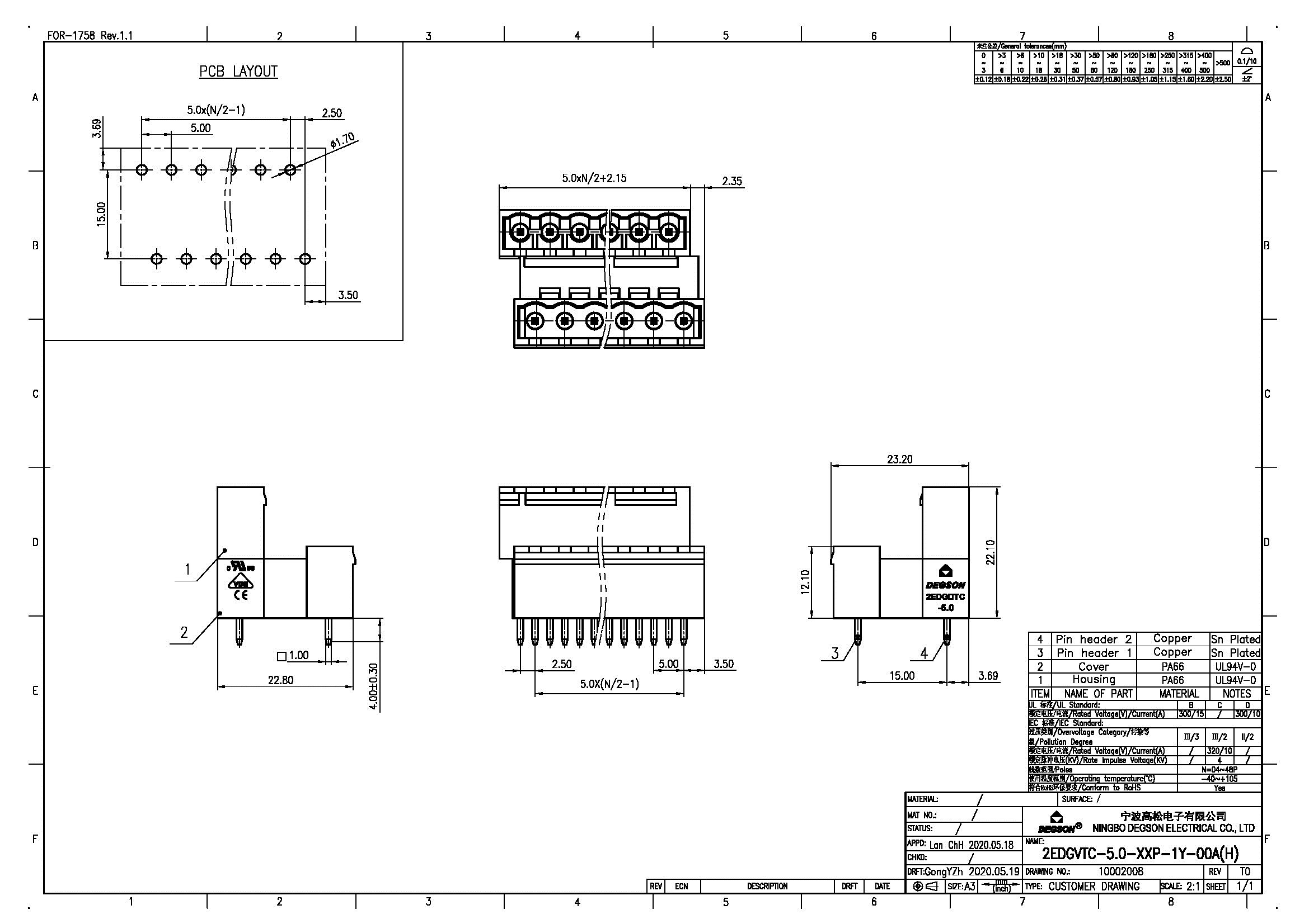 2EDGVTC-5.0-12P-14-00Z(H), Клемма на печатную плату,...