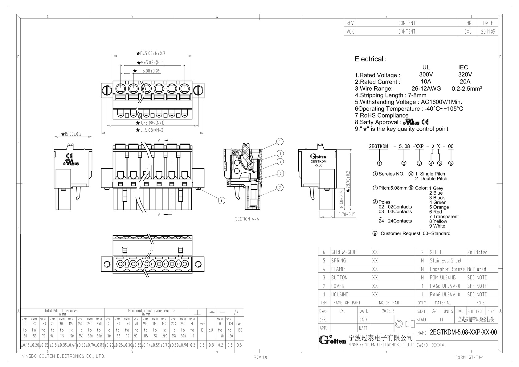 | Шаг на клемме | 5.08 |