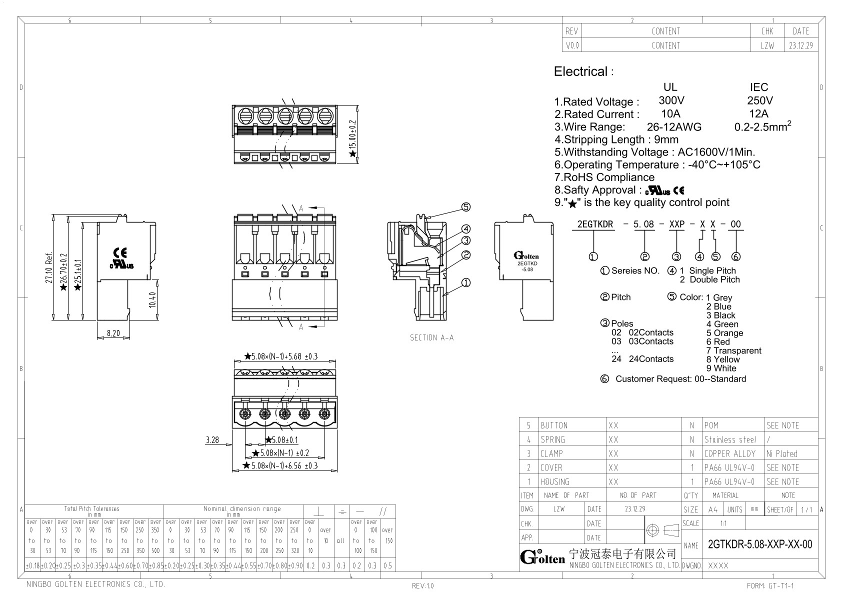2EGTKDR-5.08-05P-14-00, Клемма на печатную плату, 5...