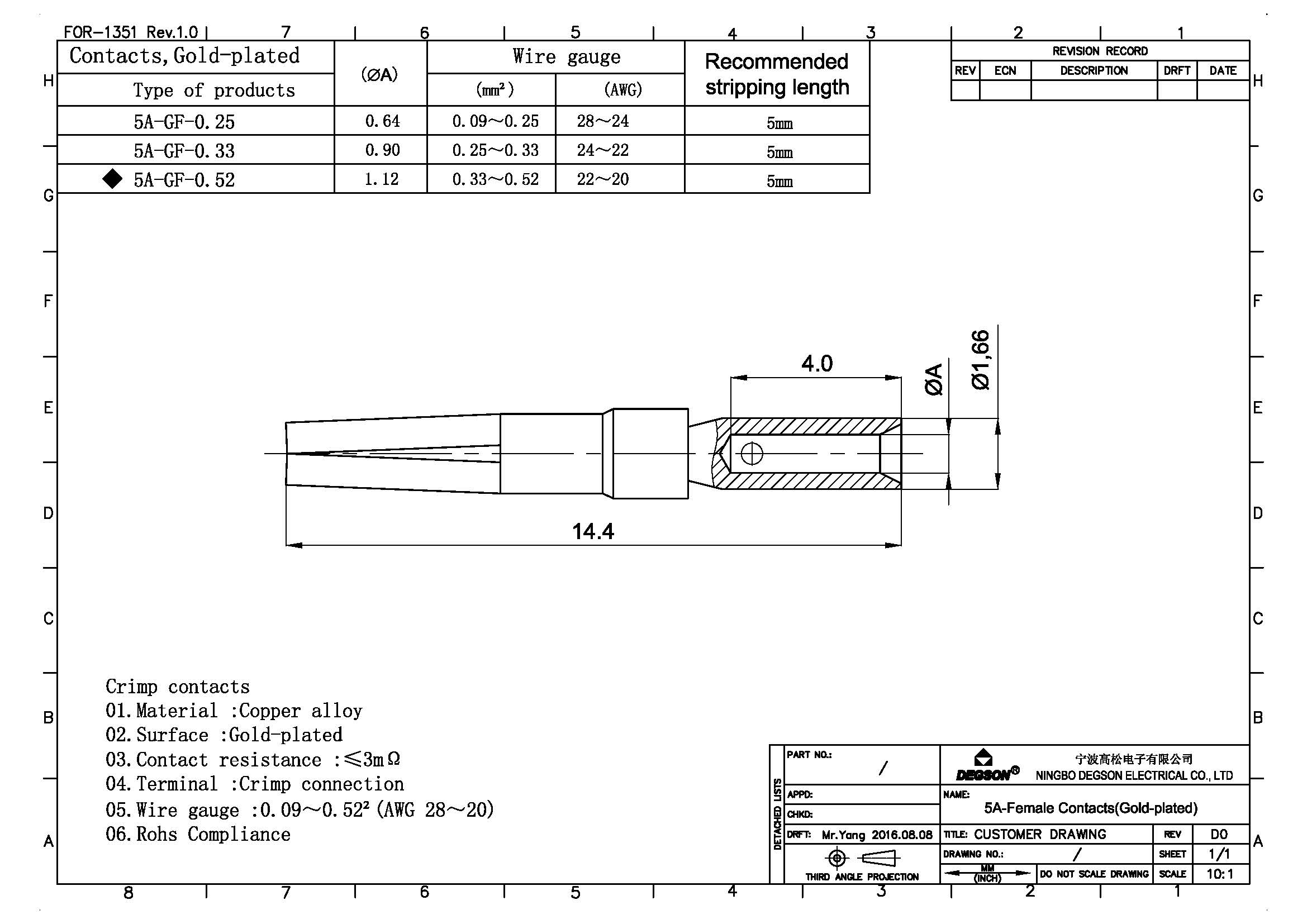 5A-GF-0.52, Обжимные контакты для силового разъема