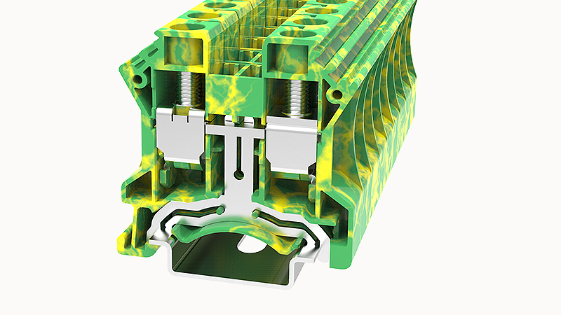 Клемма на дин-рейку, 16 кв.мм, 1 ур, 2 конт, винтовая, земля