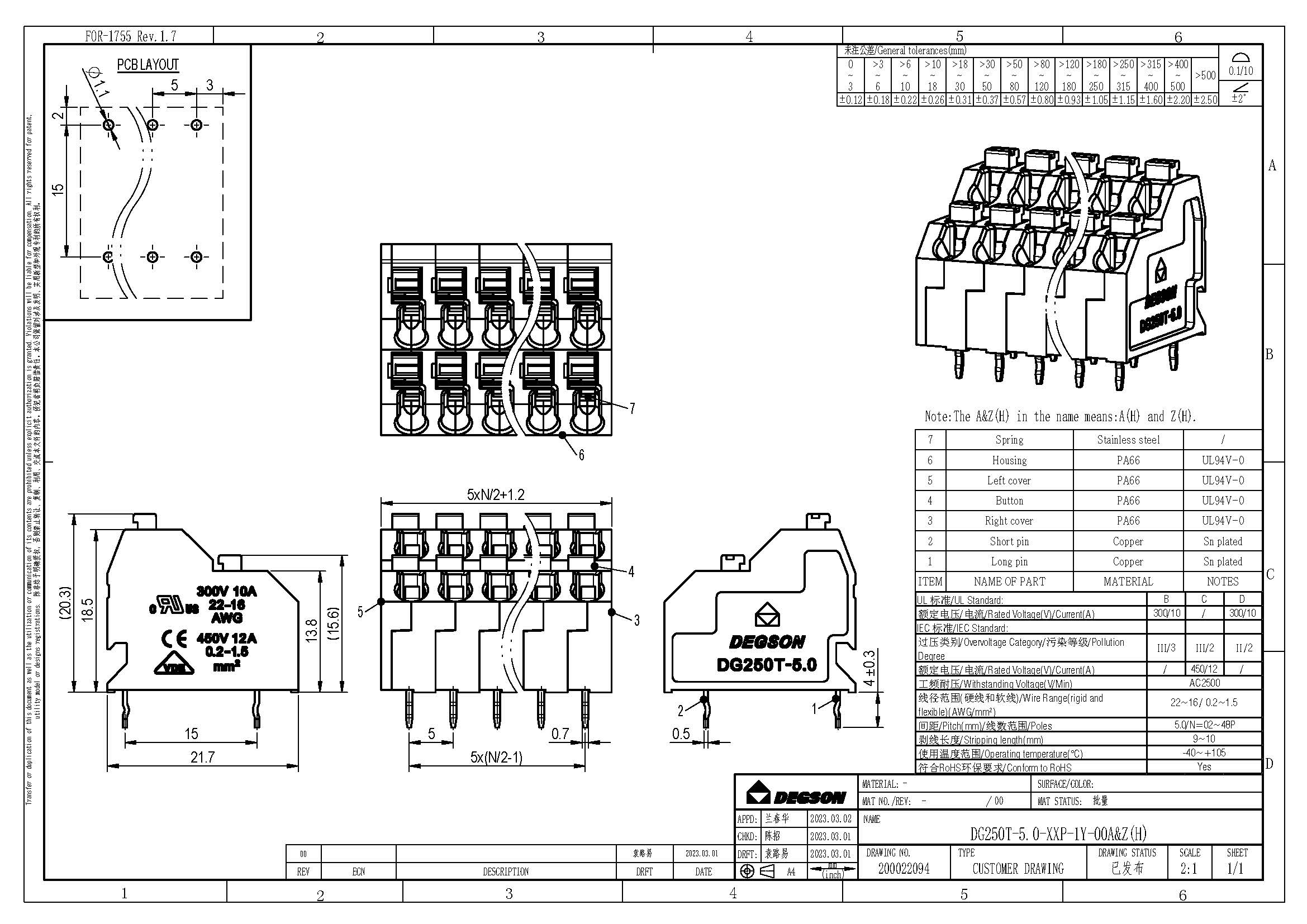DG250T-5.0-04P-11-00Z(H), Клемма на печатную плату, 4...