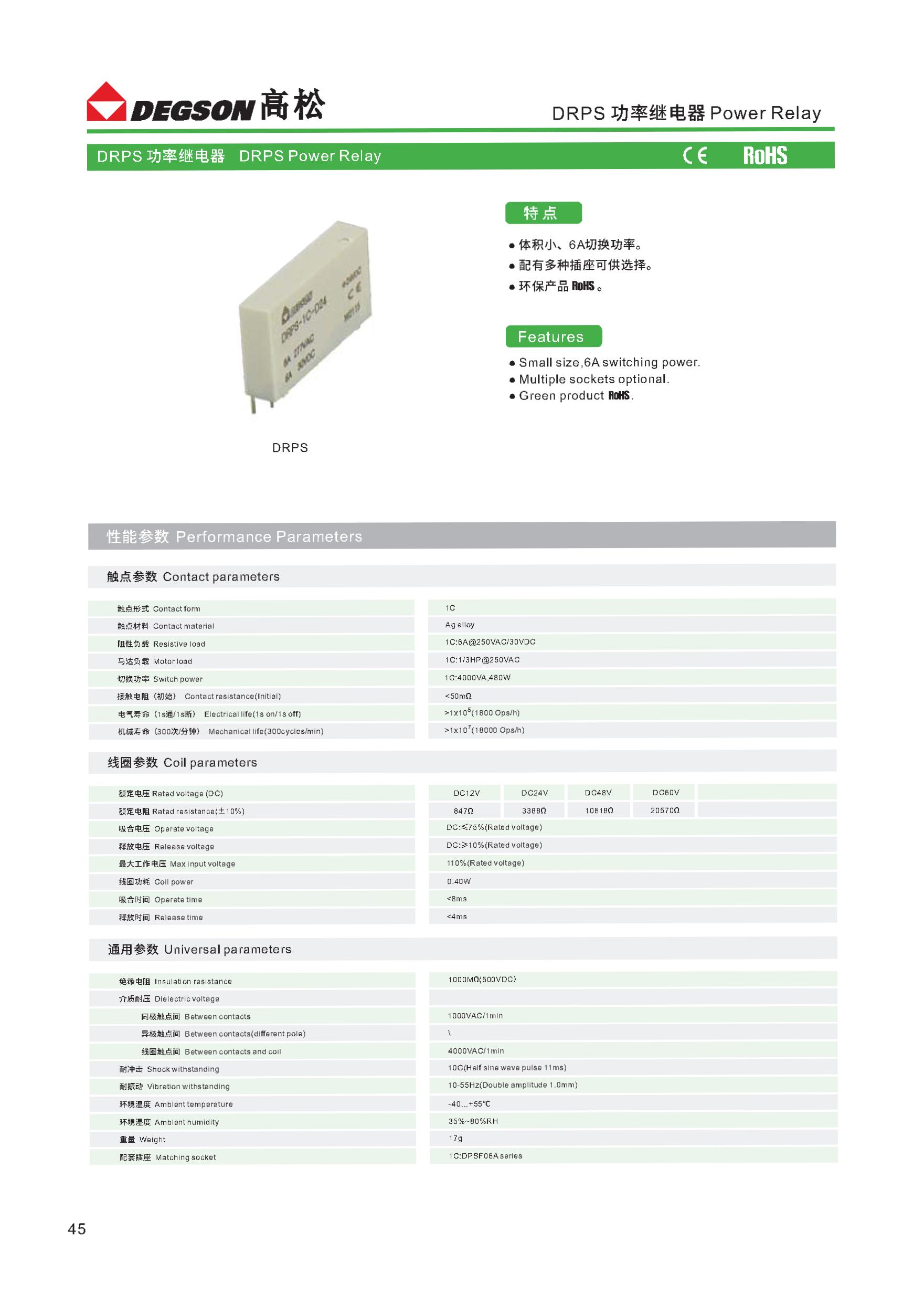 DRPS-1C-D60-06Z(H), Реле, 1CO, 60VDC, 6A