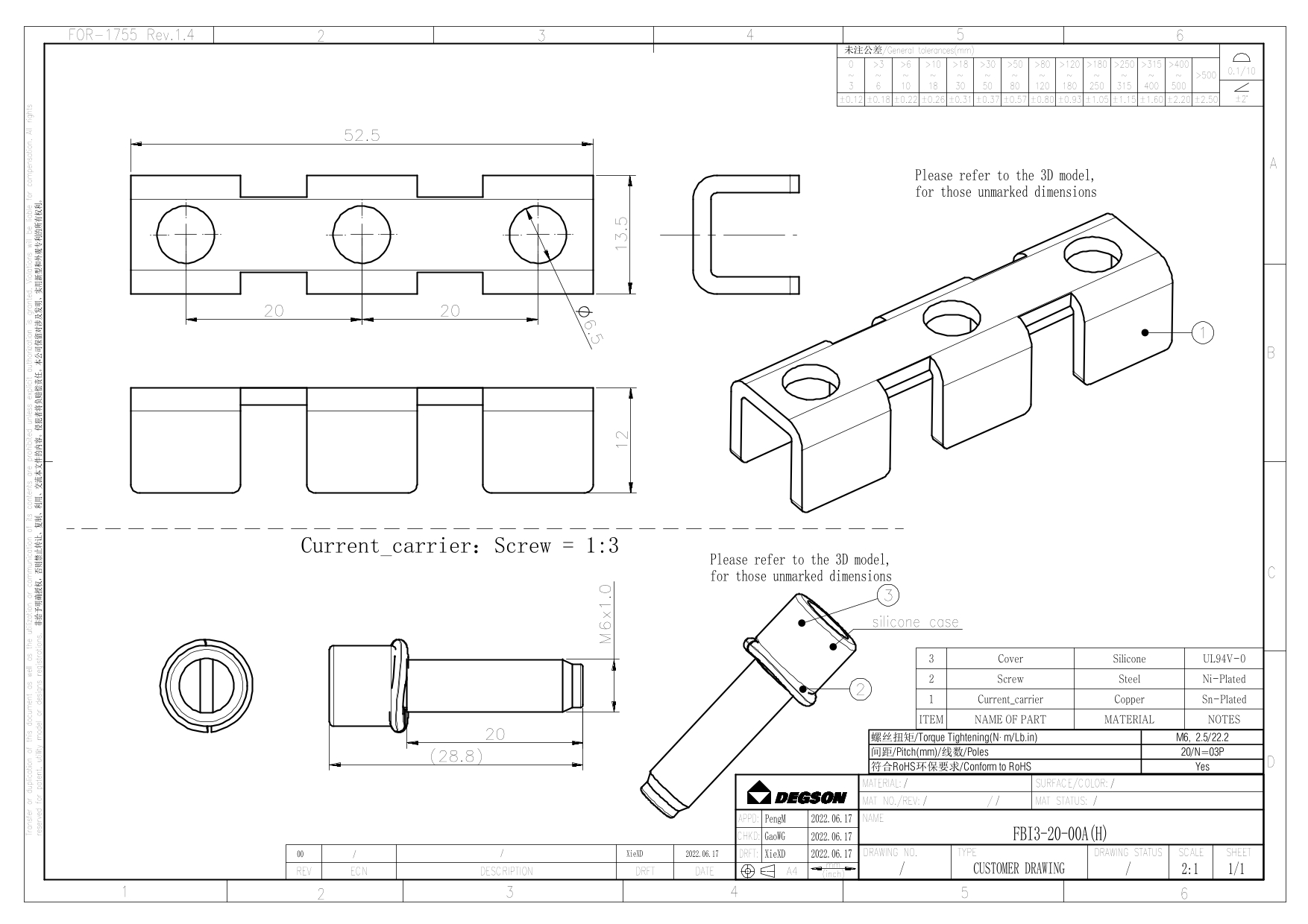 FBI3-20-00Z(H), Перемычка для клемм винтовая, 3 полюса