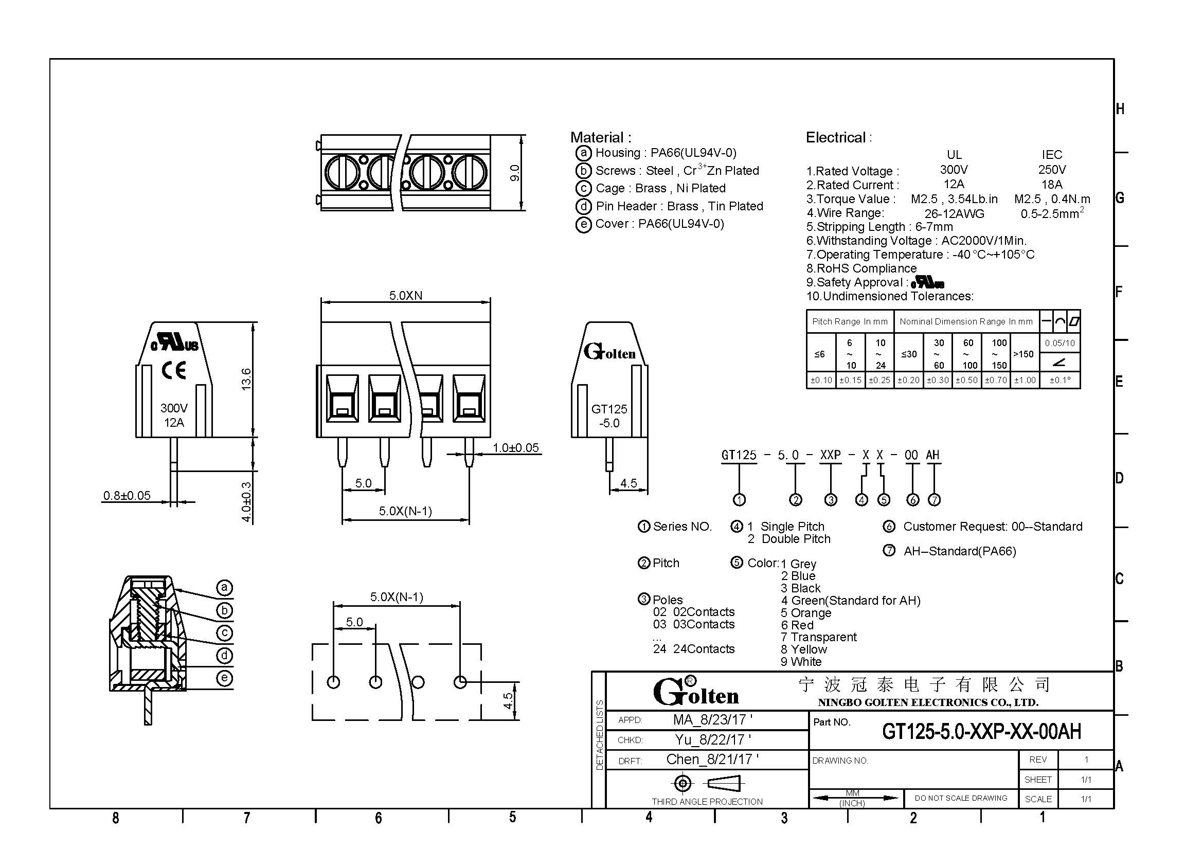 GT125-5.0-03P-14-00, Клемма на печатную плату, 3...