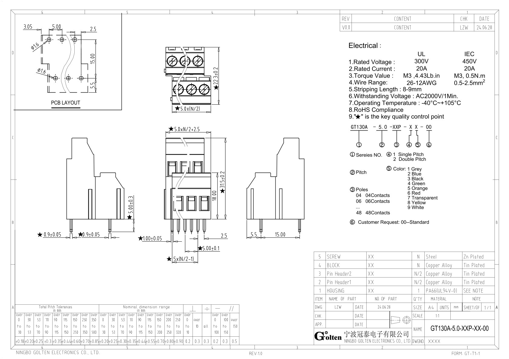 GT130A-5.0-04P-14-00, Клемма на печатную плату, 4...