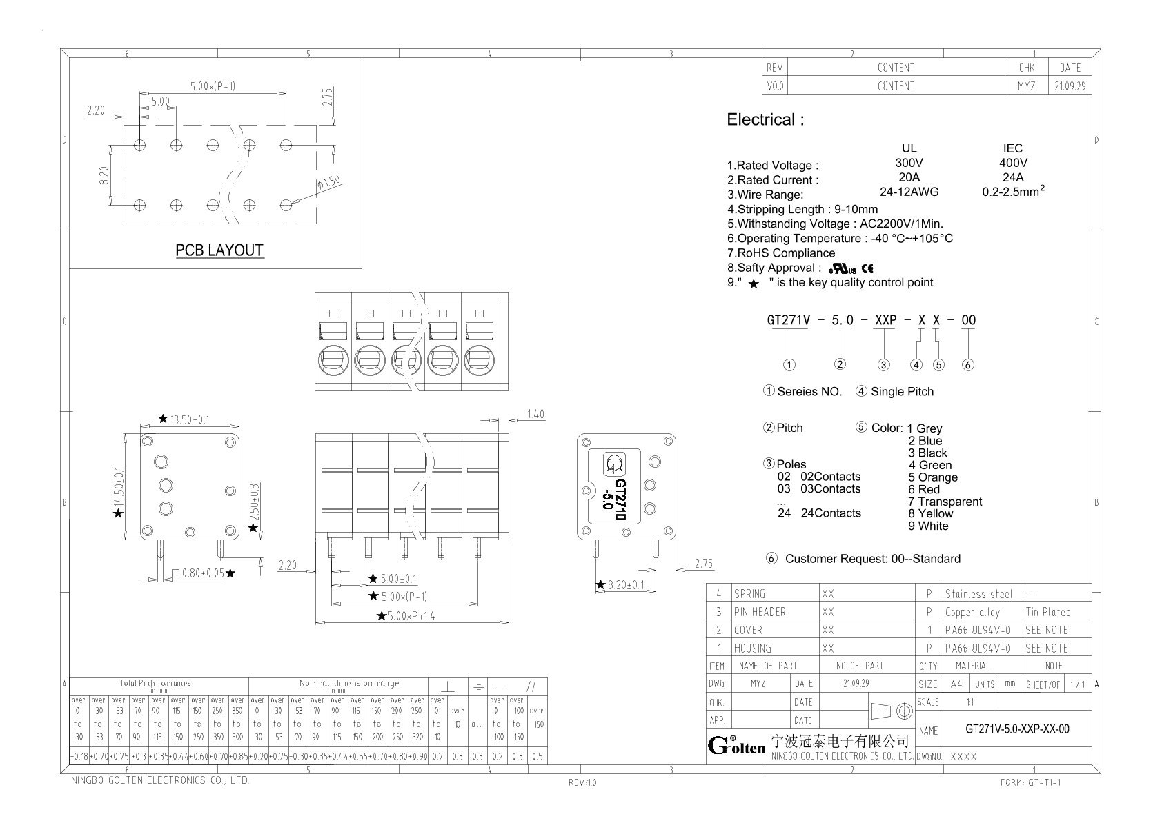 GT271V-5.0-10P-11-00, Клемма на печатную плату, 10...