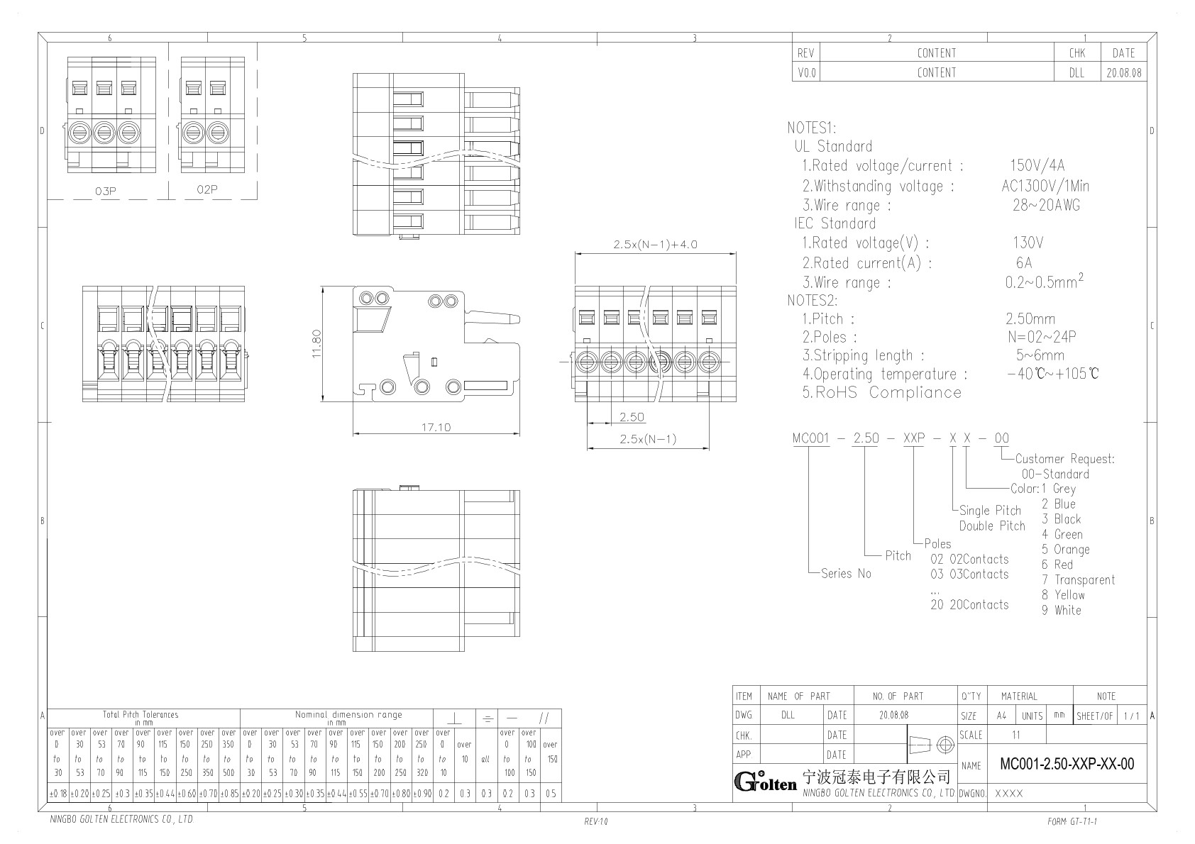 MC001-2.5-06P-11-00, Клемма на печатную плату, 6...