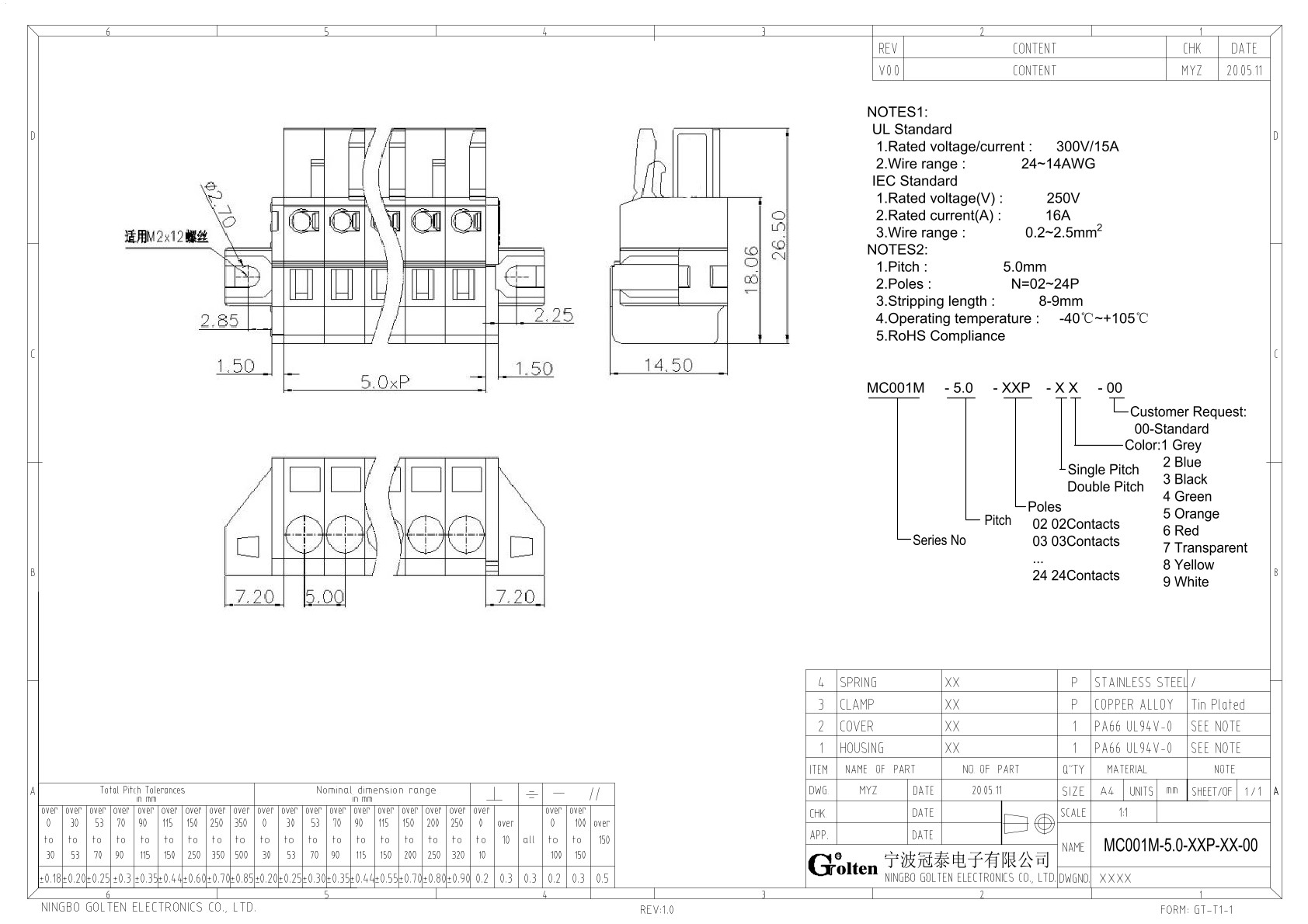 MC001M-5.0-16P-11-00, Клемма на печатную плату, 16...