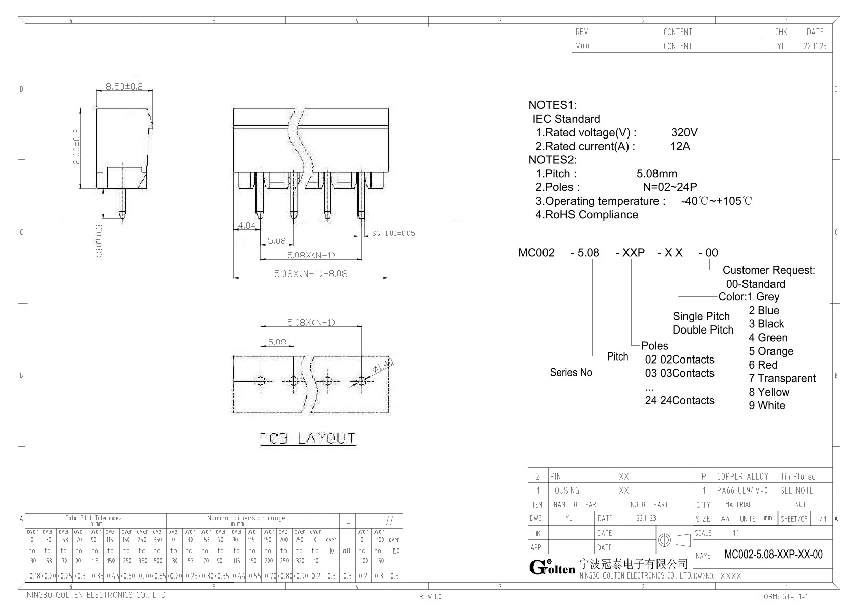 MC002-5.08-24P-15-00, Клемма на печатную плату, 24...