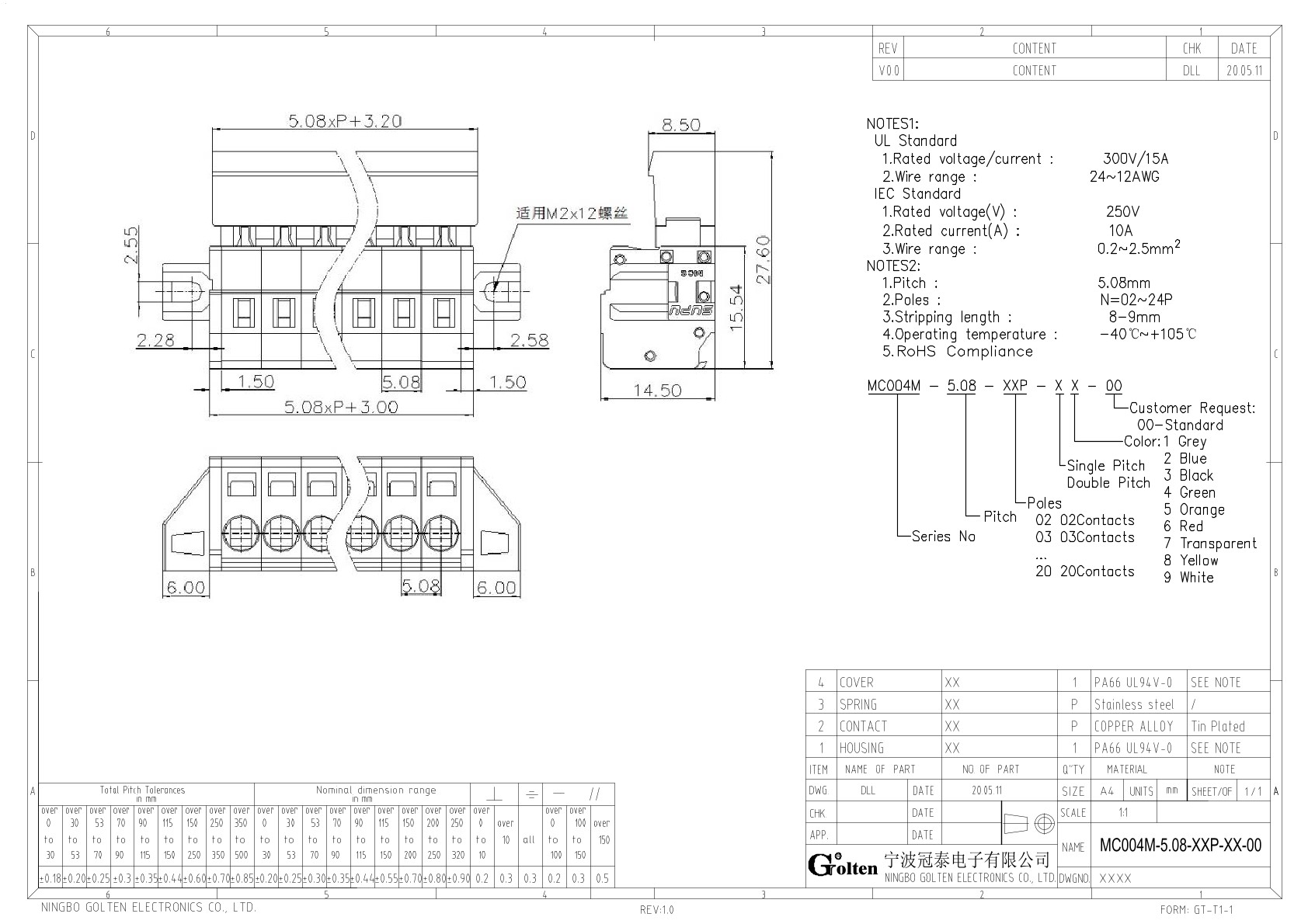 | Шаг на клемме | 5.08 |