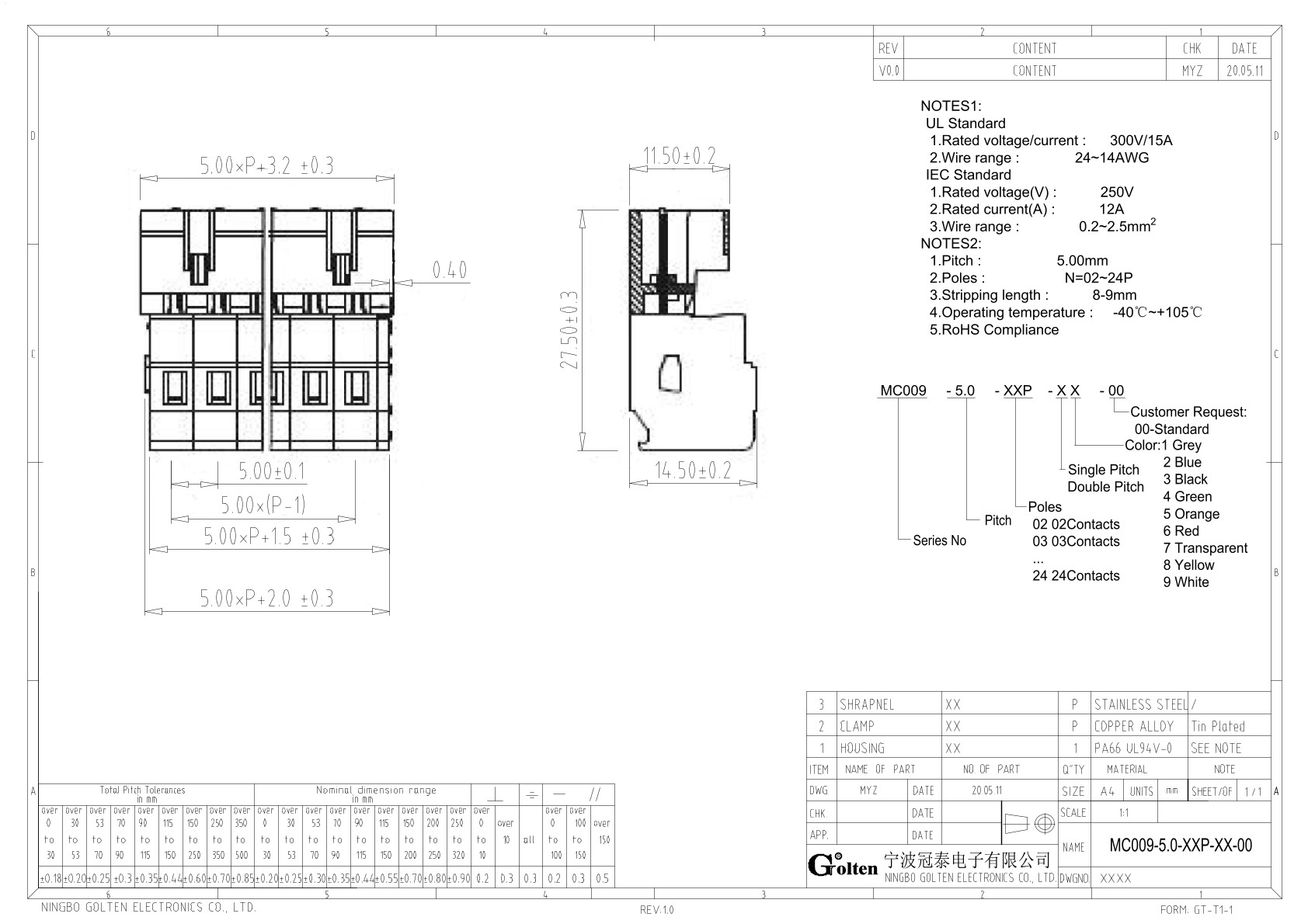 | Шаг на клемме | 5.0 |