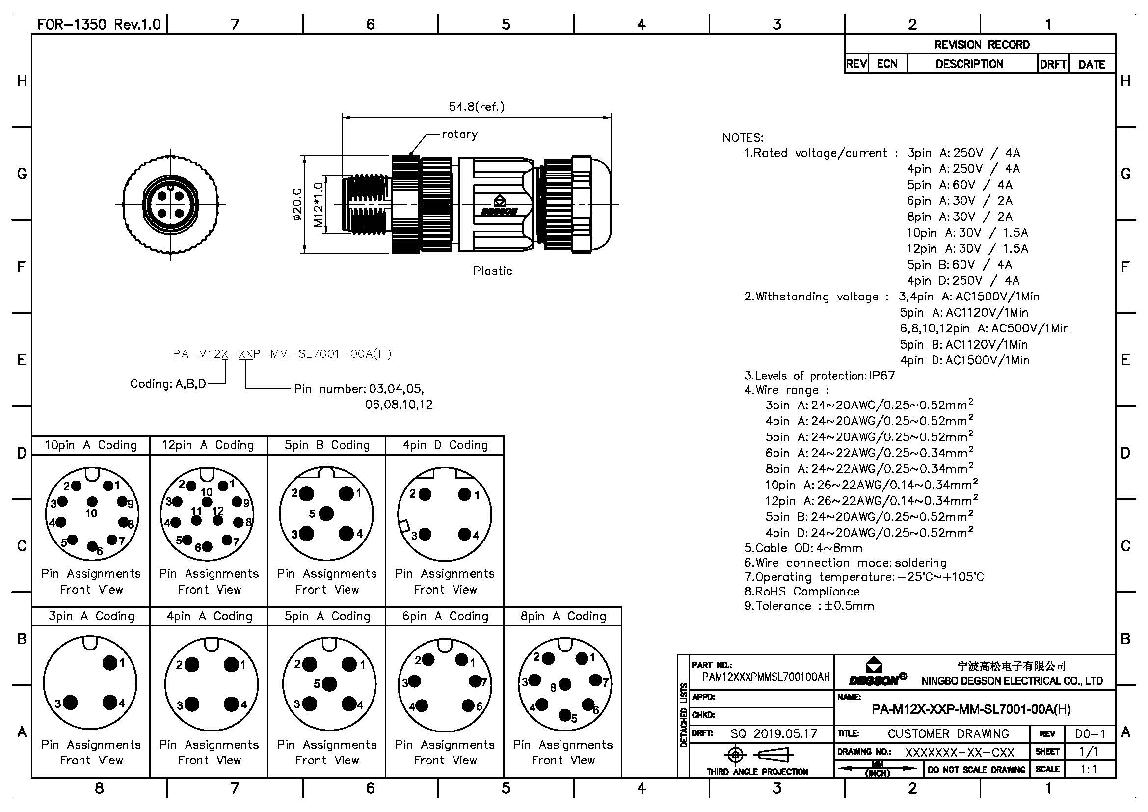 PA-M12A-08P-MM-SL7001-00Z(H), Монтажный штекер M12,...