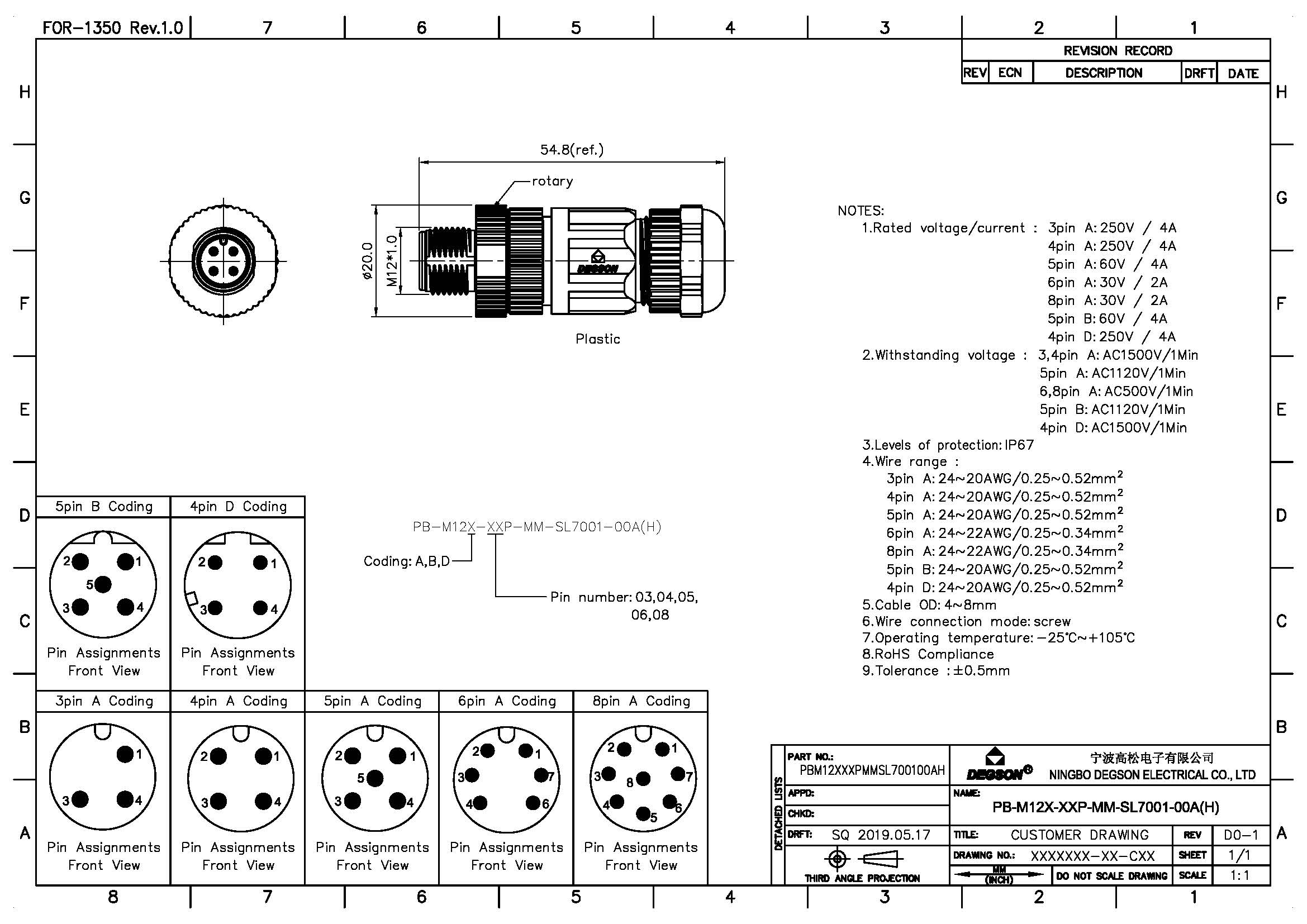 PB-M12A-08P-MM-SL7001-00Z(H), Монтажный штекер,...