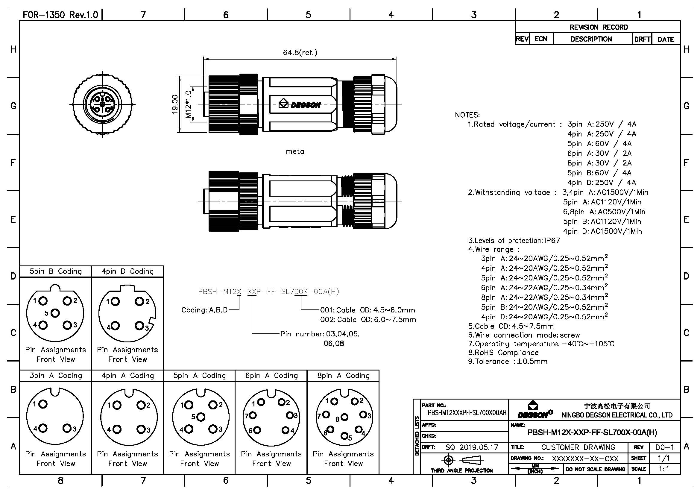 PBSH-M12A-05P-FF-SL7002-00Z(H), Разъем на провод,...