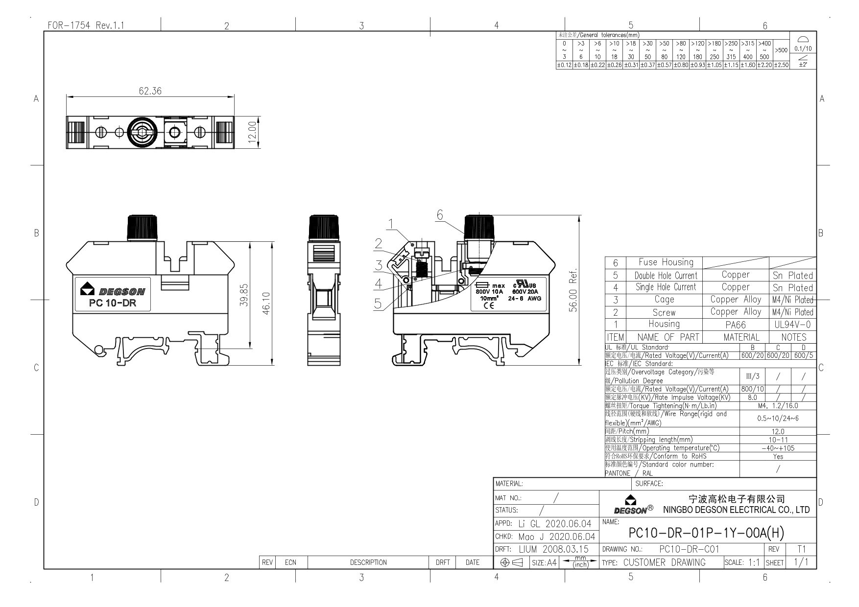 PC10-DR-01P-13-00Z(H), Клемма на дин-рейку, с...