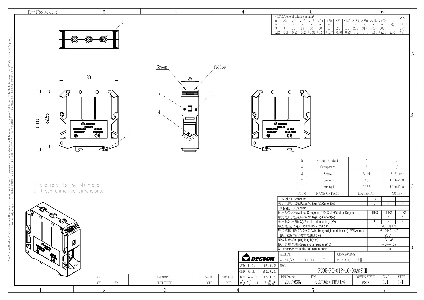 PC95-PE-01P-1C-00Z(H), Клемма на дин-рейку, 95 кв.мм,...