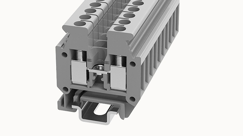 Клемма на дин-рейку, 2.5 кв.мм, 1 ур, 2 конт, винтовая, серая