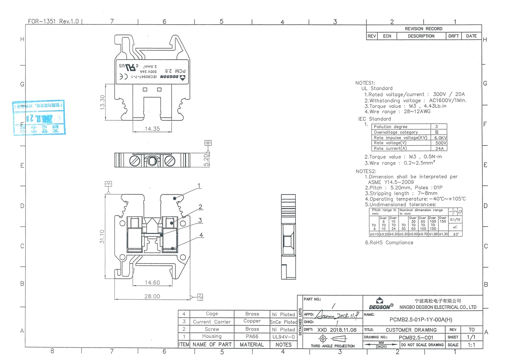 PCMB2.5-01P-11-00Z(H), Клемма на дин-рейку, 2.5...