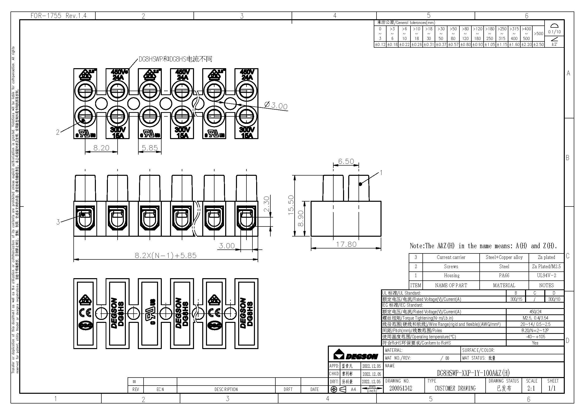 DG8HSWP-1.2-12P-17-100Z(H), Клеммная колодка, 12...