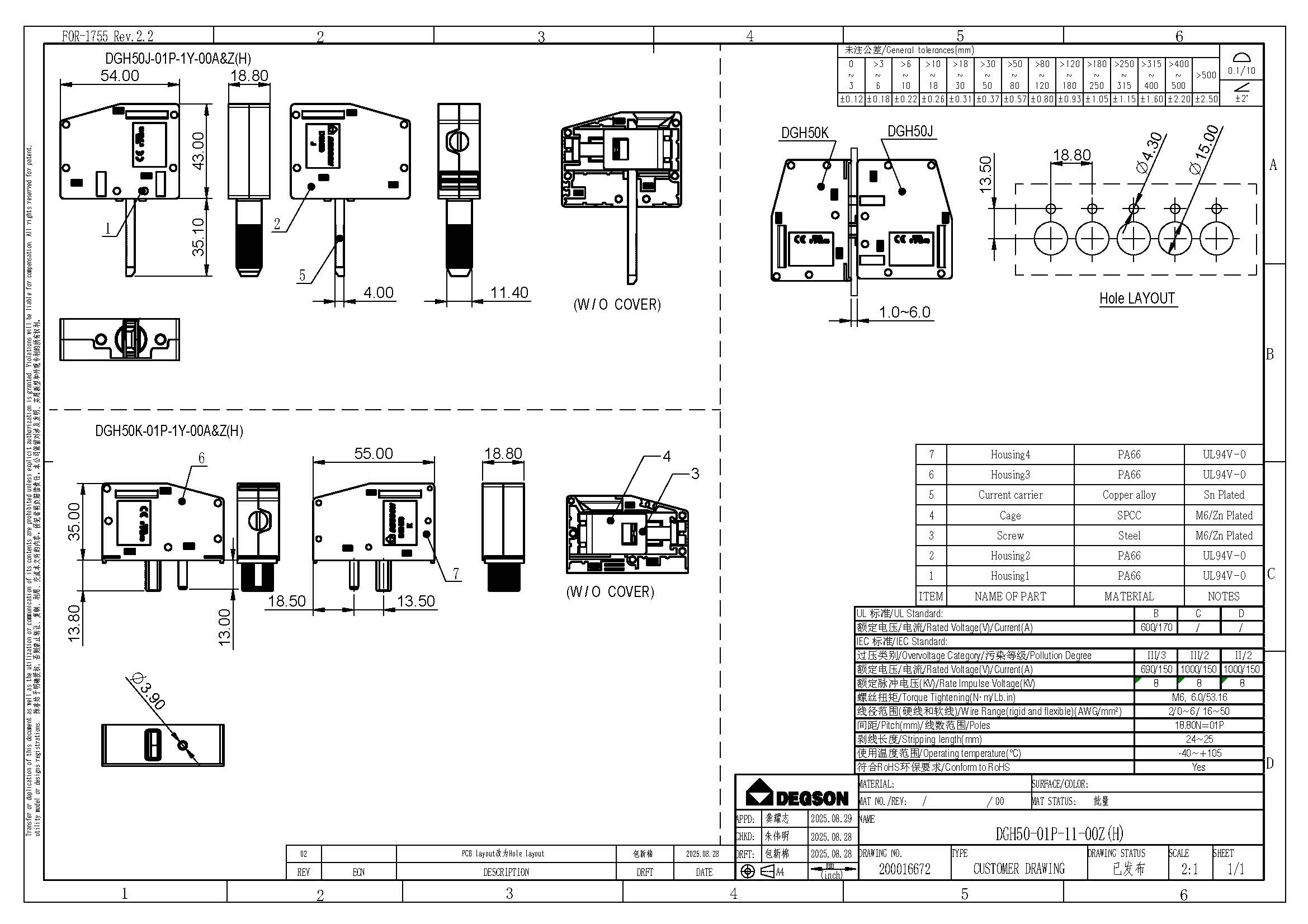 DGH50-01P-11-00Z(H), Проходной клеммный блок, винт.,...