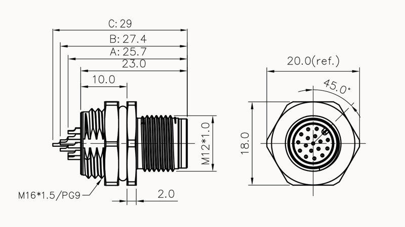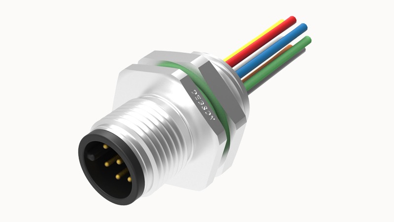 Гнездо для монтажа на панель с резьб, M12, 8 пин, M16, перед монт, с провод. 0.5