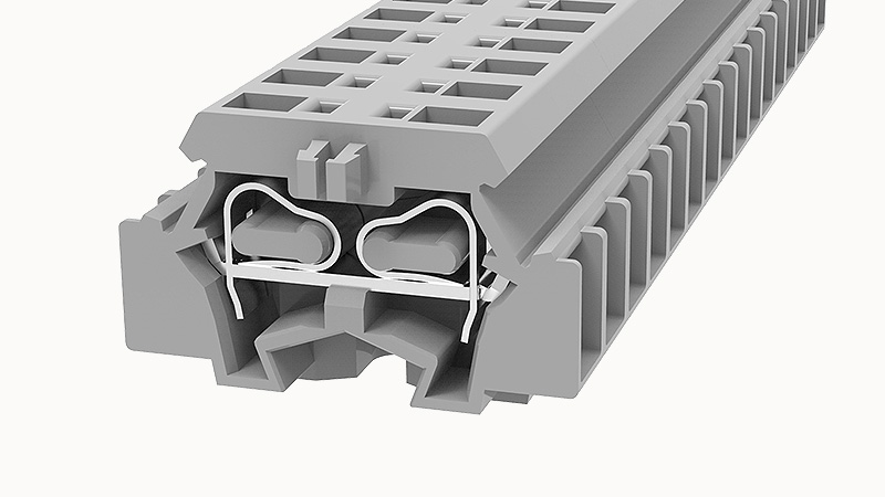 Клеммы на дин-рейку, 1.5 кв.мм, 2 блока, пружинная, серая