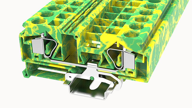 Клемма на дин-рейку, 16 кв.мм, 1 ур., 2 конт, пружинная, земля