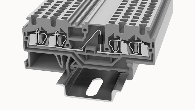 Клемма на дин-рейку с диодом, П-Л, 2.5 кв.мм, 1 ур., 4 конт, пружинная, серая