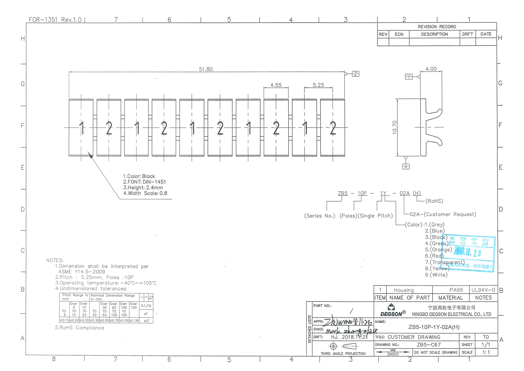 ZB5-10P-19-02Z(H), Маркировка, цифры гориз. 1, 2,...