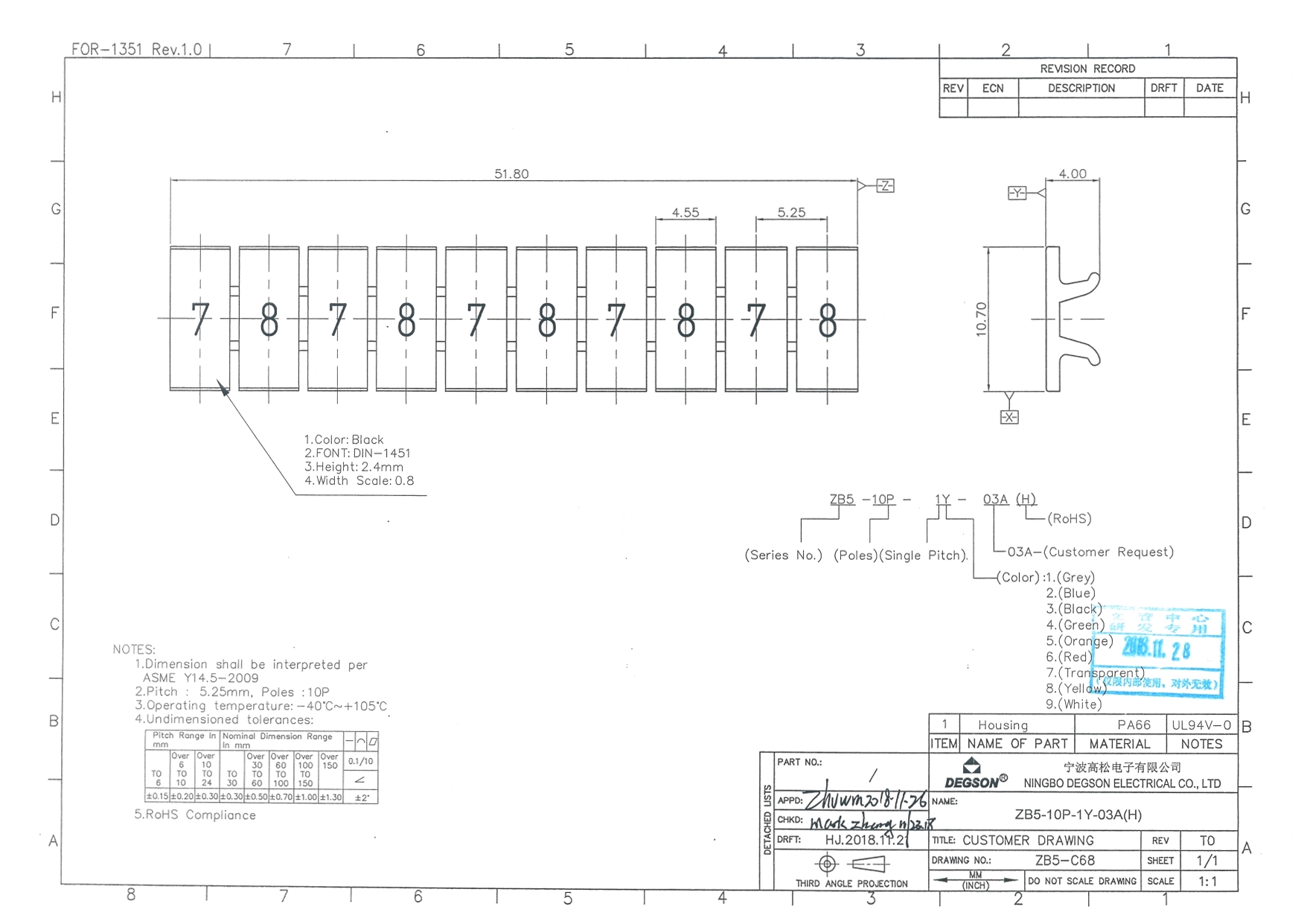 ZB5-10P-19-03Z(H), Маркировка, цифры гориз. 7, 8,...