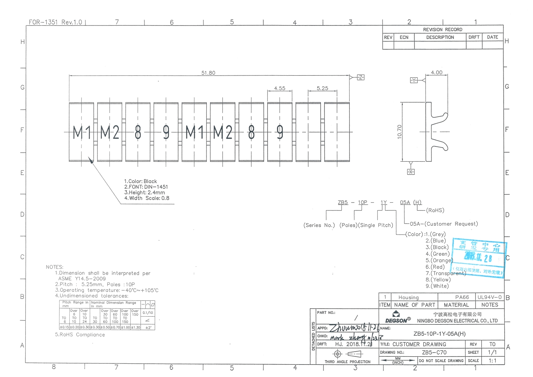 ZB5-10P-19-05Z(H), Маркировка, цифры гориз. М1, М2,...