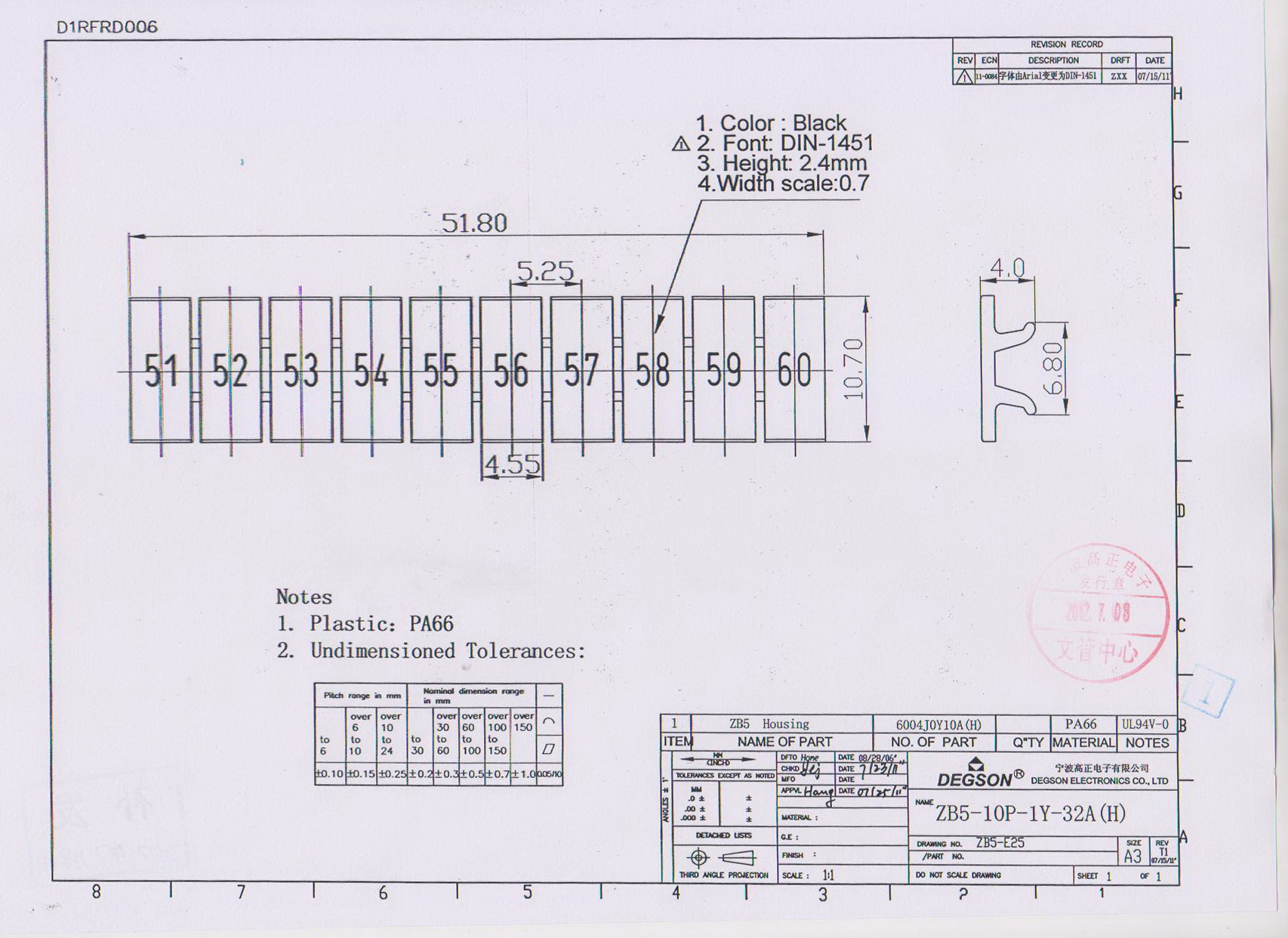 ZB5-10P-19-32Z(H), Маркировка, цифры гориз. 51-60,...