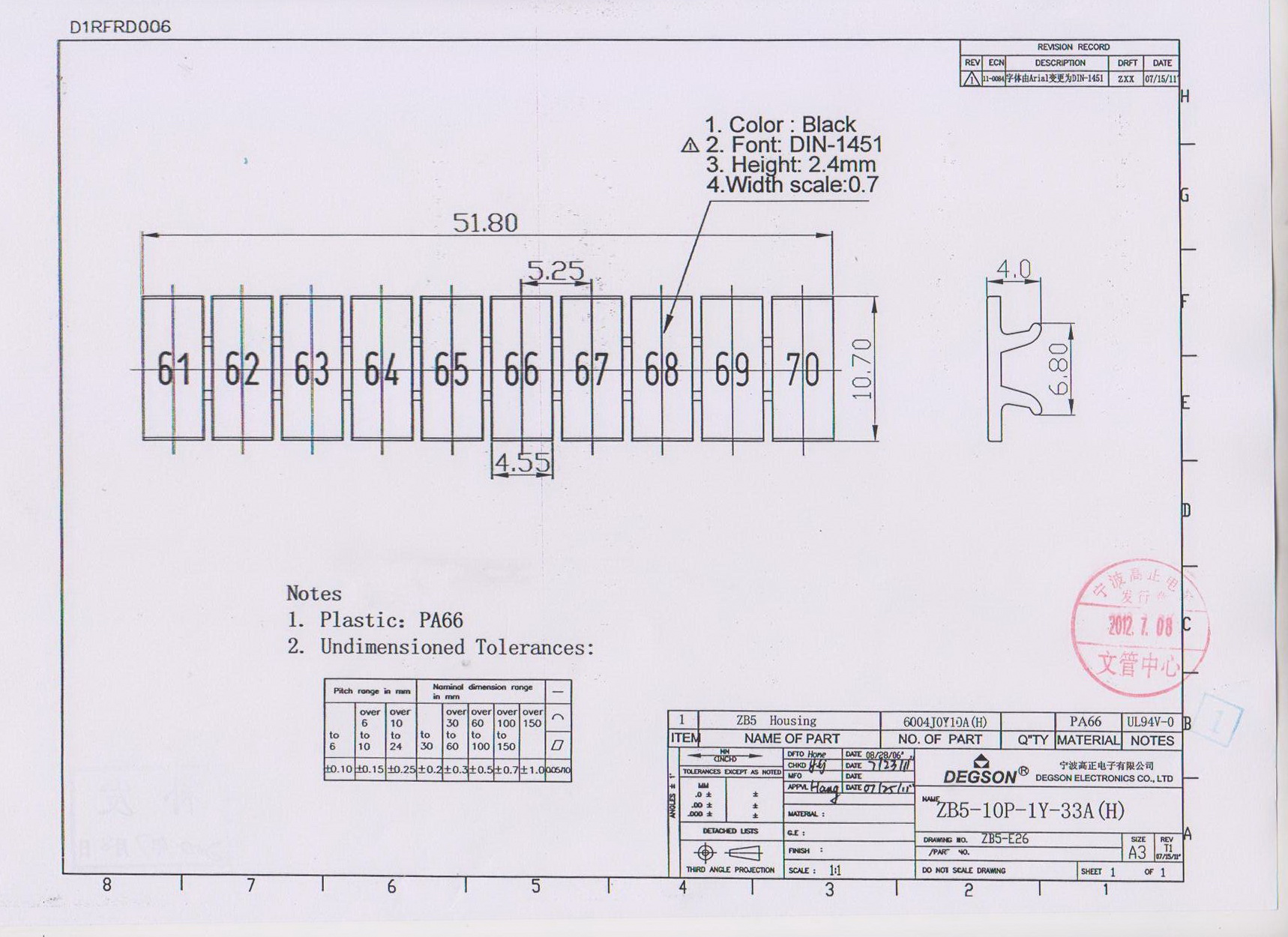 ZB5-10P-19-33Z(H), Маркировка, цифры гориз. 61-70,...