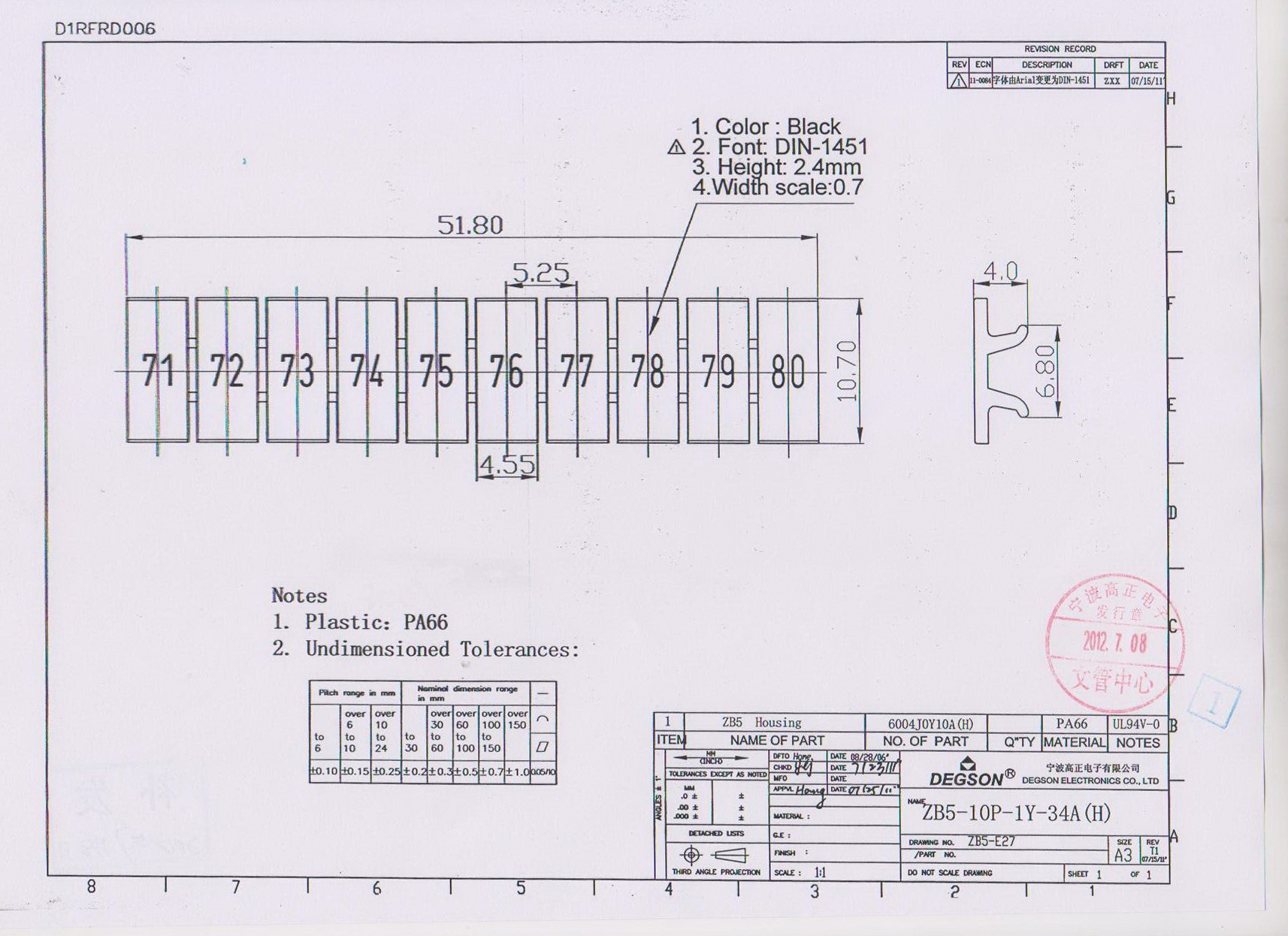 ZB5-10P-19-34Z(H), Маркировка, цифры гориз. 71-80,...