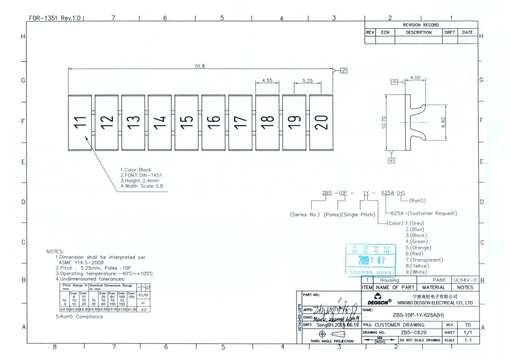 ZB5-10P-19-625Z(H), Маркировка, цифры вертик. 11-20,...