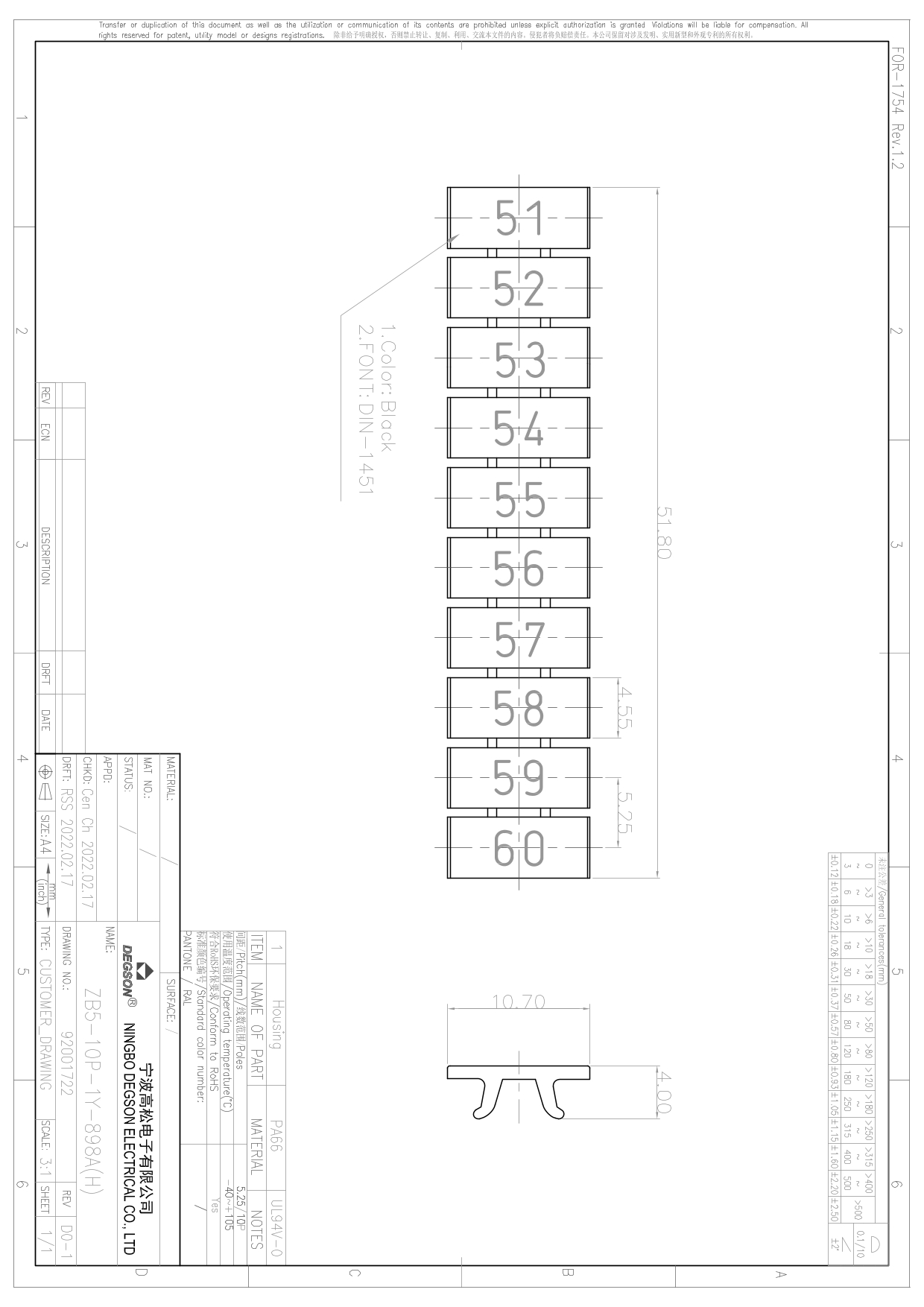 ZB5-10P-19-898Z(H), Маркировка, цирфы вертик. 51-60,...