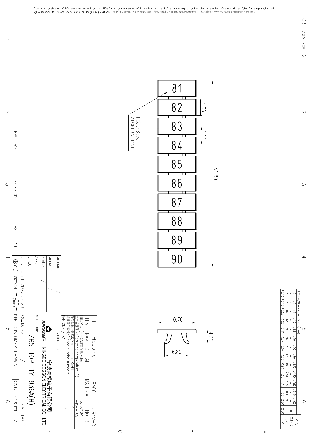ZB5-10P-19-936Z(H), Маркировка, цифры вертик. 81-90,...